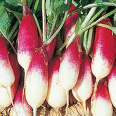 Le radis French Breakfast Bio (raphanus sativus) est une variété de radis demi-long à bout blanc. Cultivé de janvier à septembre, il prend son temps pour pousser et offrir le meilleur de lui-même. A maturité, un cinquième de sa surface est blanche tandis que le reste de la racine est rouge. Il atteint une taille de 4,5 cm. Le radis tire son nom du latin radix, radicis, "racine, raifort", du grec raiforaas, "navet". Il s'agit d'une plante bisannuelle de la famille des brassicacées. On le cultive pour ses racines pivotantes gonflées, consommées crues, comme un légume. La partie comestible du radis French breakfast Bio est, comme tous les radis, une racine pivotante à chair blanche. Celle-ci pousse dans la terre au-dessus de laquelle apparaît une tige.