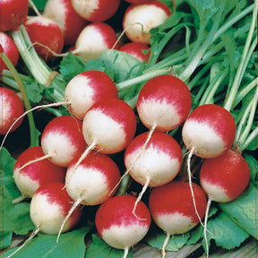 Originaire d'Extrême-Orient, ce type de radis a été mangé très tôt par l'homme dans son histoire. Le nom "radis" vient du mot latin "radix" qui signifie simplement racine. Cette espèce fait partie d'une variété précoce très croquante et est idéale pour la culture en pots de terre ou de balcon. D'une forme ronde et de couleur rose avec un bout blanc avec des feuilles vertes, sa chair blanche est savoureuse. Elle a la particularité de se conserver longtemps sans creuser. Une aubaine pour les jardiniers !