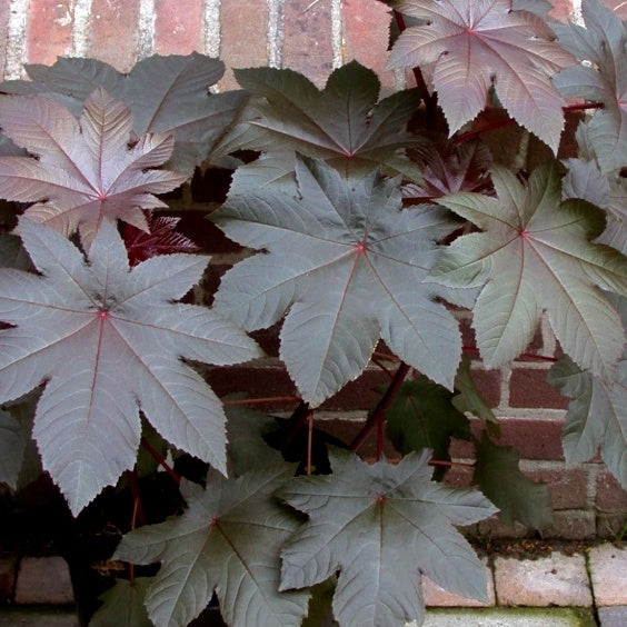 Belle plante aux feuilles palmées rougeâtres. Leur couleur rouge orange flamboyant n'apparaissent que sur les jeunes feuilles. Elles prennent ensuite des teintes vertes. Les fleurs ressemblent à des petites pelotes épineuses. Ce n'est pas une vivace car c'est une plante tropicale . Les graines sont très toxiques, ne pas les consommer ! Semer directement à l'emplacement définitif ou en pots ou conteneurs.