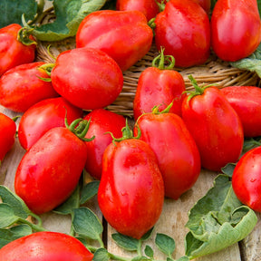 Variété tardive sans taille ni tuteurage. Fruits allongés, charnus et bien fermes. Bonne variété pour conserves de fruits entiers et concentrés. La tomate aime tout type de sols, mais préfère les sols riches et bien drainés. Une fois la levée effectuée, aux premières feuilles, effectuez un repiquage de vos plants de tomates (Solanum lycopersicum roma vf) en bonne terre dans un endroit ensoleillé et chaud. Arrosez les pieds, mais sans mouiller le feuillage et sans excès, insistez uniquement en cas de sécheresse.La tomate Roma (Solanum lycopersicum roma) est une variété populaire de tomate prune. Elle est de forme oblongue et a un aspect légèrement aplati. La peau de la tomate Roma est lisse et brillante, et sa chair est ferme et juteuse. Cette variété de tomate est souvent utilisée pour la mise en conserve et la cuisson, car elle a peu de graines et une teneur en eau plus faible que les autres types de tomates. Les tomates Roma sont aussi couramment utilisées dans les salades et les salsas en raison de leur saveur et de leur texture. Pour ces raisons, la tomate Roma est l'une des variétés de tomates prunes les plus polyvalentes.Les associations possibles