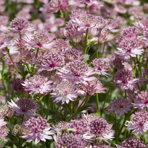 La Grande Astrance Roma peut être associée à plusieurs plantes. Elle permettra de créer des combinaisons de jardin attrayantes. Les hostas et les fougères sont de bons compagnons de l’espèce. Ces plantes apprécient également l'ombre partielle. Ces combinaisons apporteront une diversité de textures et de nuances de vert dans votre jardin. Les hémérocalles se mélangent très bien avec la variété. Ces végétaux sont connus pour leurs fleurs vibrantes et leur hauteur similaire qui se marient parfaitement avec les astrances Roma. L’ensemble offrira une explosion de couleurs et une hauteur uniforme dans votre espace vert. La variété s’épanouit aussi aux côtés des alliums et des lys. Ceux-ci sont dotés de tiges élancées et de fleurs audacieuses. Ils créent un beau contraste avec les astrances. Cette association apporte de la dimension et de la profondeur dans votre aménagement paysager. Vous pouvez également planter l’espèce avec des vivaces à feuilles argentées comme l'armoise ou l'artémise. Cette combinaison créera un bel intérêt visuel. Le feuillage argenté mettra en valeur la beauté des fleurs de l'astrance.