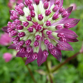 Astrantia 'Star of Passion' est une plante vivace pouvant atteindre 60 cm de haut et 40 cm d'envergure. Cette plante rustique résiste à des températures jusque -15°C. Elle apprécie une exposition soleil, mi-ombre et ombre. Les périodes idéales de plantation sont de février à avril et de septembre à novembre pour une floraison de juin à août.