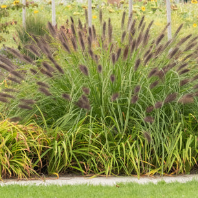 L'Herbe aux Écouvillons Viridescens est une variété polyvalente. Elle s'harmonise bien avec de nombreuses plantes. La Lavande (Lavandula spp.) est un bon compagnon de l’espèce. Cette combinaison créera un magnifique contraste visuel. Les fleurs violettes de la lavande se complètent parfaitement avec la variété. Cette dernière peut servir aussi de toile de fond dramatique pour les rosiers. Les roses de couleurs vives s’associent très bien au feuillage vert ou pourpre de l'herbe. Les hémérocalles également appelées lis d'un jour prospèrent également aux côtés de la plante. Leurs fleurs en forme d'entonnoir apportent une touche de couleur vive près des écouvillons. Les agapanthes se marient aussi à l’espèce. L’ensemble créera une ambiance tropicale dans votre jardin. Les longues tiges et les fleurs sphériques des agapanthes se mélangent bien avec le feuillage de l'herbe.