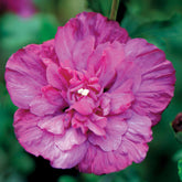 L'hibiscus syriacus un arbuste à floraison estivale magnifique. Également connue sous le nom de « Althéa Magenta Chiffon », cette plante se distingue par sa floraison riche et colorée. Elle présente des fleurs doubles pouvant atteindre jusqu'à 10 cm de diamètre. Celles-ci se renouvellent tout au long de l'été, de juillet à septembre. Elles sont éphémères mais extrêmement nombreuses, avec un centre de fleur chiffonné. Cet arbuste propose en outre des feuilles caduques et un port dressé, bien ramifié et compact.