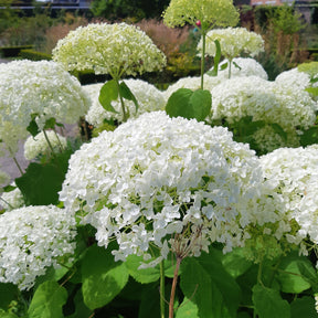 Pour accompagner l'Hortensia 'Strong Annabelle', optez pour des plantes vivaces telles que les hostas et les fougères, qui s'épanouissent également en mi-ombre et enrichissent le sol. Les astilbes, avec leurs floraisons colorées, ajoutent une touche de contraste élégant au blanc des hortensias. Assurez-vous que toutes les plantes bénéficient d'un sol riche et d'un arrosage modéré pour un massif harmonieux. En combinant ces végétaux, vous créerez un jardin luxuriant qui embellira votre espace tout au long de l'année.