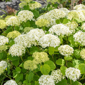 Au pied de l’hortensia arborescens 'Strong Annabelle', une bordure de buis ou un chèvrefeuille arbustif feront ressortir les splendides fleurs blanches.