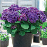 L’un des atouts de l'Hortensia Violet Intense réside dans sa capacité à s'harmoniser avec d'autres plantes pour créer des combinaisons visuellement saisissantes. Nombreuses associations sont possibles. Par exemple, les inflorescences arrondies de cette plante contrastent magnifiquement avec la grande silhouette de la rose trémière. Les couleurs vives de cette dernière apportent une touche dramatique au jardin. On peut citer également la lavande qui dégage un parfum envoûtant et ses tons de violet pâle se marient bien avec la profondeur du violet de l'hortensia. Cette combinaison crée un jardin aussi bien relaxant que spectaculaire.