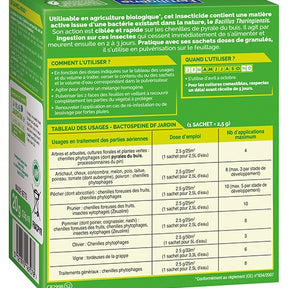 Ce produit innovant élimine efficacement la pyrale du buis, un nuisible qui endommage gravement les plantes, notamment les conifères. Sa formule unique garantit une action rapide, avec un délai avant récolte de seulement 2 jours, assurant une protection optimale de vos espaces verts sans perturber leur développement. En ciblant spécifiquement ce nuisible, votre jardin retrouve sa beauté et sa vitalité. Adapté à tous types de conifères, ce traitement préserve l'écosystème tout en maintenant l'intégrité de vos précieuses plantes.