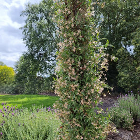 Associer le Jasmin étoilé 'Star of Milano'® avec d’autres plantes permet de créer des compositions harmonieuses et esthétiques dans votre jardin. Vous pouvez le planter aux côtés de plantes vivaces à port buissonnant comme les lavandes ou les santolines, qui masqueront agréablement les pieds du jasmin tout en conservant de la fraîcheur. Des agapanthes bleues ou blanches en association avec le jasmin étoilé peuvent également créer un contraste intéressant et élégant. Sur une pergola , intercaler le jasmin avec des clématites ou des passiflores pour varier les floraisons et profiter de l’exubérance de ces plantes grimpantes.