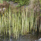Le jonc des chaisiers albescens, connu scientifiquement comme Schoenoplectus lacustris 'Albescens', est une plante aquatique robuste idéale pour les berges. Ses tiges vert foncé et lisses atteignent jusqu'à deux mètres de hauteur, offrant une solution naturelle pour stabiliser et épurer les berges de façon esthétique. Cette plante vivace prospère sous 5 à 20 cm d'eau, rendant les plans d'eau plus épurés grâce à ses propriétés filtrantes tout en embellissant leur environnement avec sa présence imposante et sa fonction écologique essentielle:15†Catalogue_aquaticbezancon.pdf?.