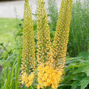 Avec sa hampe majestueuse, le lis des steppes a les atouts nécessaires pour embellir votre jardin. Le lis des steppes est une plante d'ornement majestueuse qui développe une tige florale atteignant environ 1,5 m à maturité. C'est une plante vivace capable de vivre de très nombreuses années. Son nom latin est Eremurus 'bungei'. Les poètes, inspirés par sa beauté, lui ont donné d'autres noms comme « quenouille de Cléopâtre » ou « lis à queue de renard ».La belle plante d’extérieur offre une floraison généreuse pouvant durer 3 semaines, entre les mois de juin et juillet. Des épis de 15 à 30 cm laissent alors apparaître des centaines de petites fleurs, en forme d'étoiles, d'une belle couleur jaune d'or virant au brun orangé quand elles commencent à faner.Les racines du lis des steppes ont la forme d'une pieuvre. Nectarifère, elle fait la joie des insectes pollinisateurs comme les abeilles et les papillons.Le lis des steppes peut être planté dans des sols limoneux, caillouteux ou calcaires. Ceux-ci peuvent être enrichis en terreau si nécessaire.Les associations possiblesLe lis des steppes est encore peu utilisé par les jardiniers et mieux connu des paysagistes. Il se prête à de multiples usages. Il peut être associé à de nombreuses plantes, mais attention toutefois à ne pas le mettre en concurrence avec d'autres espèces gourmandes en humus.Il peut être placé le long d'une haie ou cultivé en pot pour égayer une terrasse. Il décore les chemins, agrémente les rocailles ou les parterres. Le lis des steppes trône au centre ou à l'arrière de massifs constitués de plantes plus petites comme des potentilles arbustives par exemple. Pour réussir vos aménagements paysagers, pensez à réaliser des groupes d'au moins 3 ou 4 individus.Coupé et mis en vase, le lis des steppes forme de sublimes et élégants bouquets qui durent très longtemps.La couleur vive de ses fleurs aide à créer des tableaux uniques qui captivent les admirateurs de belles plantes.Conseils de plantation du lis des steppesOriginaire des steppes d’Asie centrale, particulièrement rustique, le lis des steppes ne souffre ni du froid ni du manque d’eau. Il s’adapte très bien à des températures négatives jusqu'à -15°C. Un excès d'humidité stagnante au niveau de ses racines peut lui être fatal.L’Eremurus 'bungei' préfère une exposition au soleil, à l'abri du vent, pour ne pas endommager ses hampes florales. Pour le planter, en automne et dans un endroit ensoleillé, il suffit de creuser un trou d'environ 15 cm de profondeur, puis de poser par-dessus une couche drainante de 5 cm. La pouzzolane ou un peu de gravier fera parfaitement l’affaire. Ensuite, positionnez les bulbes de lis des steppes vers le haut. Enfin, recouvrez le tout d'un mélange de terre et de compost. Sa culture est possible partout en France.Si ces conditions de plantation sont respectées, cette belle plante fera votre bonheur pendant de nombreuses années dans le jardin ! Conseils d’entretien du lis des steppesIl ne demande pas beaucoup d’entretien et se prête facilement au plaisir des jardiniers débutants. On pensera, cependant, au moment de son développement à réaliser un apport de compost. Si le printemps s’annonce sec, il faudra également l'arroser une fois par semaine uniquement. Les tiges de cette variété de lis peuvent être coupées une fois fanées. Le lis des steppes peut se multiplier par graines ou par division des racines.
