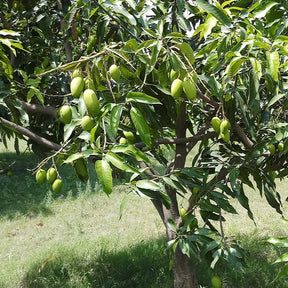 Cet arbre produit des fruits en forme ovale et allongée, recouvert d’une chair jaune verdâtre, juteuse et parfumée. Ses mangues renferment un goût délicieux et sucré. Elles pèsent environ 450 à 500 g. Les professionnels Willemse vous conseillent de les récolter à partir du milieu jusqu’à la fin de l’été, procurant une période de consommation continue pour les passionnés impatiens de manger ses délices.