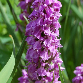 L'Orchis négligé (Dactylorhiza praetermissa) est une belle orchidée terrestre robuste et très rustique, c'est-à-dire très résistante au froid (-30°C). Elle se plaît en zones humides comme les prairies humides par exemple et peut être plantée dans les régions du nord de la France. Elle dispose de mai à juin de jolies fleurs en épis mesurant 50/70 cm avec la hampe. Ces petites fleurs sont bicolores Violet foncé et mauve clair (diamêtre de 1 à 2cm). Son feuillage est vert maculé de brun et bien touffu. Ces plants agés de 4 ans sont en âge de fleurir ! Plantes livrées en période de dormance de Septembre à Avril. Délai de livraison 4 à 6 semaines.