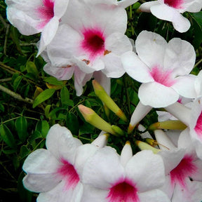 Liane Sub-Tropicale australe de grand développement. Feuillage persistant vert foncé brillant et port érigé. La plante donne une magnifique et abondante floraison en coroles roses à centre rouge légèrement parfumé. Lieu de culture : Véranda ou serre froide (Hors gel). Culture quelque fois possible en pleine terre dans les régions les plus chaudes (Côte d'Azur ou littoral atlantique par exemple). Culture à l'extérieur possible durant la saison estivale. Température minimale de conservation généralement observée : -3 °C. Délai de livraison 4 à 6 semaines.