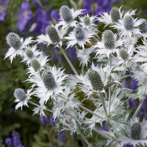Le Panicaut géant se marie bien avec une variété d'autres plantes pour créer des combinaisons attrayantes et harmonieuses dans le jardin. En raison de sa taille imposante et de son aspect saisissant, il peut servir de plante d'arrière-plan ou de point focal au sein d'un massif de fleurs. Associé à des plantes à floraison estivale comme les rudbeckias, les hémérocalles ou les échinacées, le Panicaut géant crée un spectacle de couleurs et de textures qui attire l'attention tout au long de la saison de croissance.