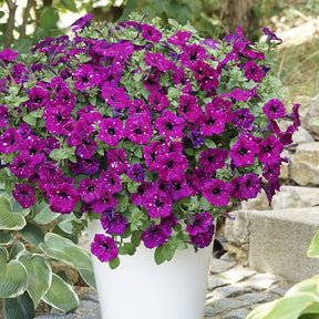 Pour créer des compositions végétales dans votre jardin, les spécialistes Willemse vous proposent d’associer le Petunia Royal Sky à d’autres espèces. Accompagnez-le des vivaces à feuillage vert pour un contraste saisissant. Les pensées, avec leurs nuances, s’associent bien, tandis que les cosmos apportent une élévation délicate. Pour une palette florale diversifiée, intégrez des zinnias aux teintes chaudes. Optez également pour des herbes aromatiques comme la lavande pour ajouter du parfum. Nous vous suggérons les graminées ornementales pour une texture élégante. Les géraniums à fleurs blanches ou roses se marient harmonieusement avec ses teintures bleu et violet. Privilégiez les combinaisons où chaque plante se met en valeur, créant un arrangement vivant et équilibré. Jouez avec les hauteurs, les formes et les couleurs pour un effet visuel attrayant.