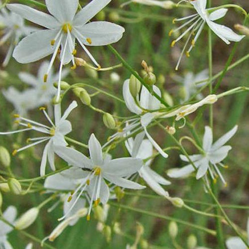Phalangère à fleurs de lis Anthericum liliago est une plante vivace pouvant atteindre 80 cm de haut et 30 cm d'envergure. Cette plante rustique résiste à des températures de -15°C et apprécie une exposition ensoleillée. Les périodes idéales de plantation sont de février à avril et de aôut à octobre pour une floraison de mai à juillet.