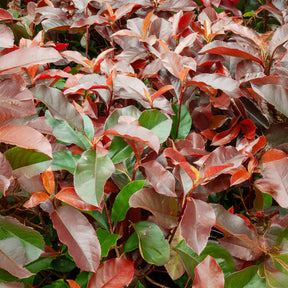 Le photinia trouve sa place dans de nombreuses compositions paysagères grâce à sa faculté à bien s'associer avec d'autres végétaux. Son feuillage rouge contrasté est particulièrement élégant lorsqu'il est mélangé à des plantes à feuillage vert ou argenté, comme les lauriers ou les oliviers. De plus, sa robustesse face aux conditions urbaines, telles que la pollution et la sécheresse, en fait un allié de choix pour des environnements diversifiés, y compris les jardins de ville.Le saviez-vous ?