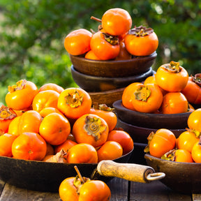 Le kaki Muscat allie la beauté d'un arbre ornemental offrant un décor différent à chaque saison, à l'utilité d'un arbre fruitier grâce à son gros fruit rond orangé, savoureux et plein de vitamines. Comment lui résister ?