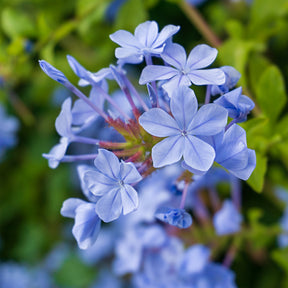 La Dentelaire du Cap affiche une tolérance modérée au froid, pouvant survivre à de courtes gelées jusqu'à -5 °C, ce qui la rend adaptée aux zones de rusticité 9 à 11. Elle est également remarquable pour sa faible vulnérabilité face aux parasites, diminuant ainsi le besoin de traitements phytosanitaires fréquents. Historiquement, certaines cultures utilisaient ses racines à des fins médicinales pour leurs propriétés bénéfiques supposées. En présentant des fleurs qui attirent papillons et abeilles, la Dentelaire du Cap contribue également à stimuler la biodiversité dans votre jardin. En tant que jardinier chez Willemse, je recommande vivement la Dentelaire du Cap pour ajouter une touche audacieuse à tout espace vert, tout en garantissant une relative facilité d'entretien pour ceux qui désirent un jardin à la fois beau et gérable.CONSEIL DE PRO