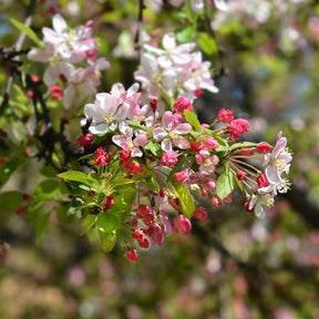 Le Pommier du Japon se prête à des associations variées au sein de vos agencements de jardin. Il se marie élégamment avec des arbustes comme l'hortensia ou le cornouiller pour créer une synergie harmonieuse et dynamique. Au sol, des couvre-sols comme les hostas ou des bulbes de printemps enrichiront la palette de couleurs et de textures offertes par cet "Arbre à fleurs". En intégrant le Pommier du Japon dans des massifs mixtes, vous pouvez non seulement jouer sur les contrastes, mais également sur les séquences de floraison, pour assurer un jardin en évolution continue au fil des saisons.Le saviez-vous?