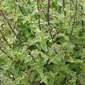 Scrophularia auriculata Variegata est une plante vivace aquatique pouvant atteindre 90 cm de haut et d'envergure. Cette plante rustique résiste à des températures au-delà de -15°C. Elle apprécie une exposition ensoleillée et mi-ombre. La période idéale de plantation est de février à avril et de septembre à novembre pour une floraison de juin à août