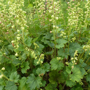 Tellima grandiflora Forest Frost est une plante vivace pouvant atteindre 50 cm de haut et d'envergure. Cette plante rustique résiste à des températures au-delà de -15°C. Elle apprécie une exposition ensoleillée et mi-ombre. La période idéale de plantation est de février à avril et de septembre à novembre pour une floraison d'avril à juillet