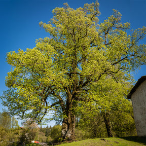 Le Tilleul à grandes feuilles est un arbre majestueux originaire d'Europe centrale. Atteignant généralement une hauteur importante de 30 mètres, il arbore une couronne dense et presque ronde. Ses feuilles sont grandes, mesurant entre 6 et 12 cm, avec une face supérieure vert foncé et légèrement velue. Ce grand arbre est idéal pour les paysages anciens, les parcs et les accotements spacieux. Sa grande rusticité le rend adapté à un large éventail de conditions climatiques, résistant bien au froid tout en préférant les sols riches en calcaire.