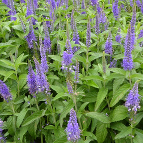 La Véronique à grandes feuilles Blauriesin s'intègre élégamment au sein de divers arrangements dans le jardin, formant des ensembles esthétiques et vivants. Associée à des plantes à floraison printanière comme les tulipes, les jacinthes et les primevères, elle participe à la création d'un magnifique tableau floral dès le début de la période de croissance, offrant un contraste saisissant avec ses couleurs vibrantes. En complément, l'association avec des vivaces fleurissant en été, telles que les rudbeckias, les échinacées et les asters, enrichit le jardin d'un intérêt visuel continu à travers l'été et l'automne, assurant une transition douce entre les saisons grâce à une diversité de textures et hauteurs. Pour finir, la présence de plantes au feuillage distinctif, comme les graminées ornementales aux nuances argentées ou bronze, rehausse les qualités visuelles de la Véronique à grandes feuilles Blauriesin, apportant une profondeur additionnelle au paysage.