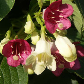 Le Weigelia Marjorie, aussi connu sous le nom de Weigela Florida Marjorie, est un arbuste originaire de l’est de l’Asie, de la famille des Caprifoliaceae. Son port érigé et compact, au feuillage caduc vert qui décline vers une teinte pourpre et ocre en automne, est un véritable plaisir pour les yeux. Ses fleurs multicolores allant du blanc au rose soutenu en corymbes viennent égayer le tout. Sa floraison décrite comme étant généreuse a lieu de mai à juin et de septembre à octobre. Le Weigelia Marjorie offre une cascade de fleurs en clochettes aux camaïeux de rose allant de la teinte la plus soutenue au plus clair.